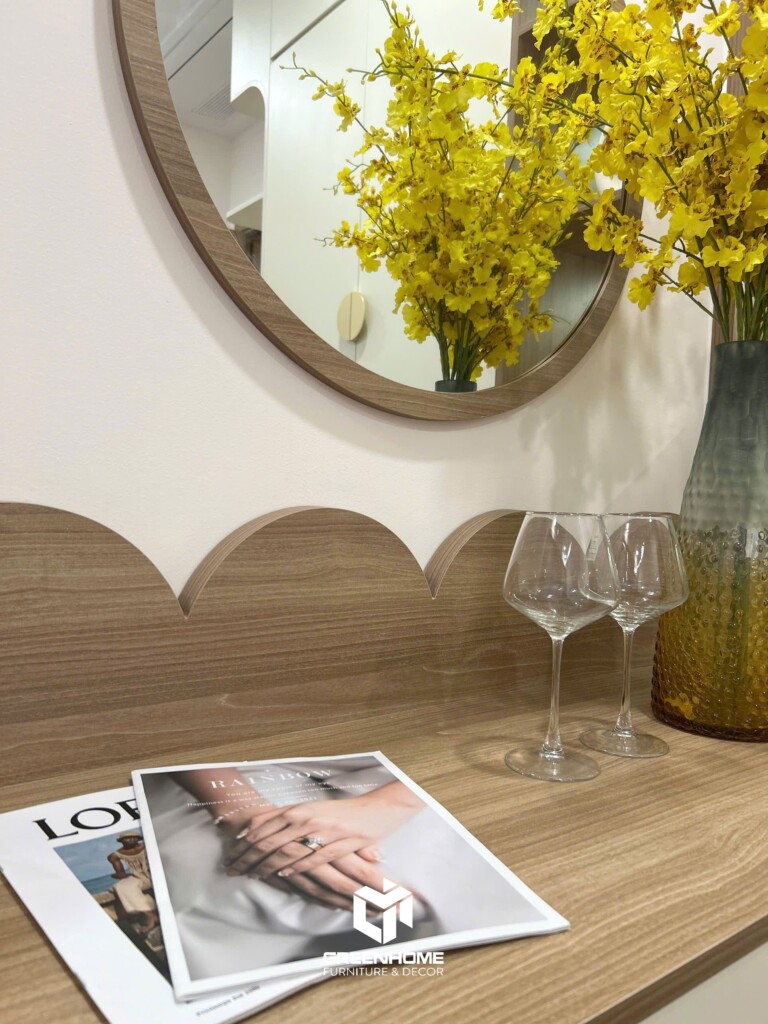 Tone màu be – gỗ sáng tiếp tục được giữ xuyên suốt, mang lại cảm giác đồng nhất và ấm áp.