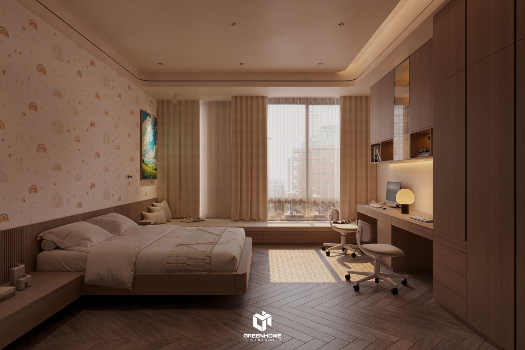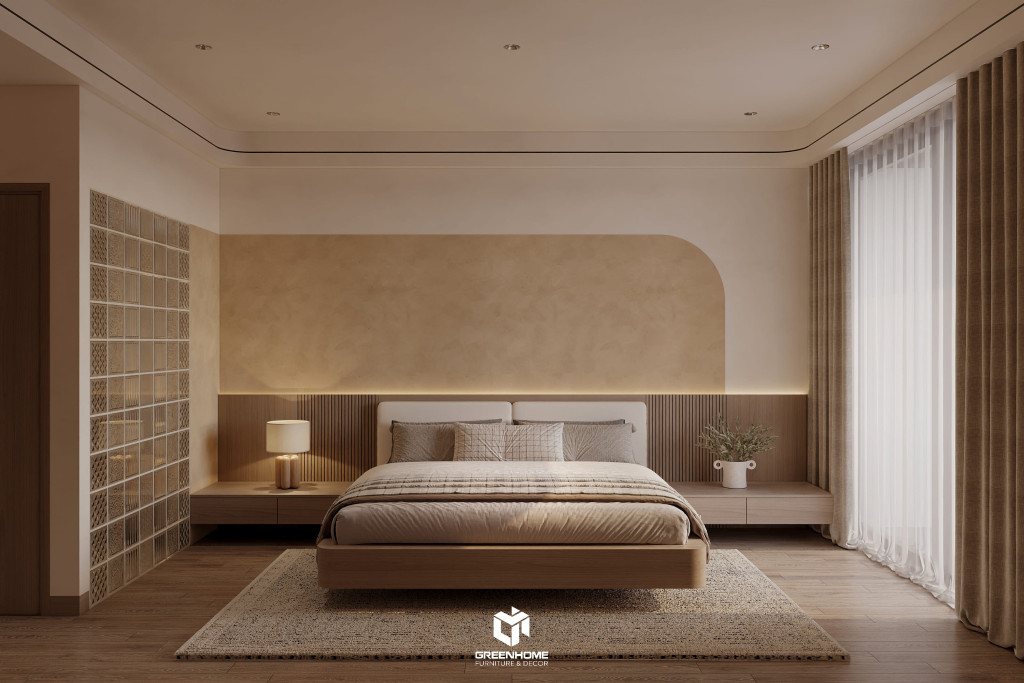 Phòng ngủ master cần đảm bảo sự riêng tư, yên tĩnh và thư giãn tuyệt đối. GreenHome ưu tiên thiết kế tối giản, tập trung vào cảm giác nghỉ ngơi thực sự.