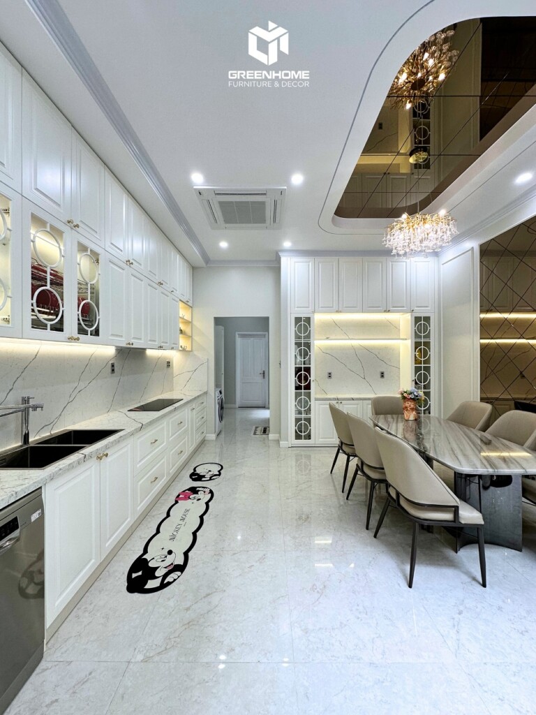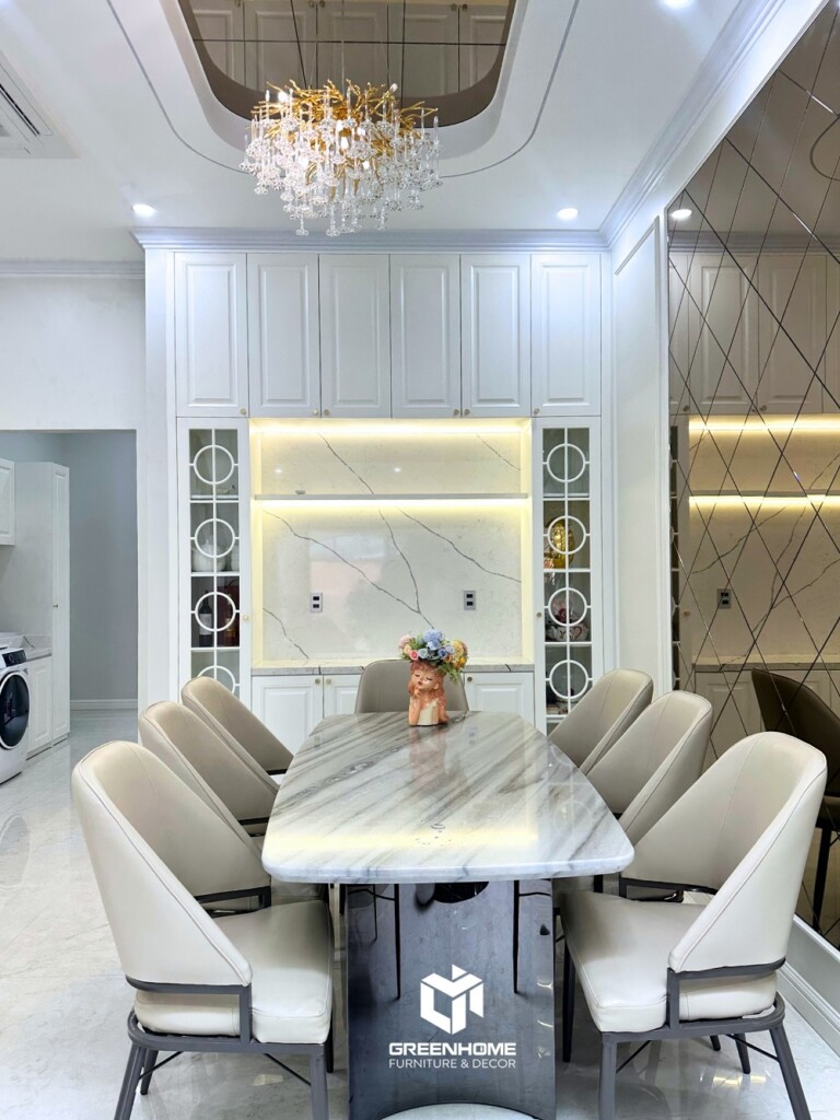 Với tốc độ thi công nhanh nhưng độ tỉ mỉ phải nói là cực kì cao. GreenHome đã thi công thành công hoàn thiện nội thất ngôi nhà trong thời gian nhanh nhất. Gia chủ cực kì hài lòng và còn giới thiệu thêm khách hàng cho công ty.