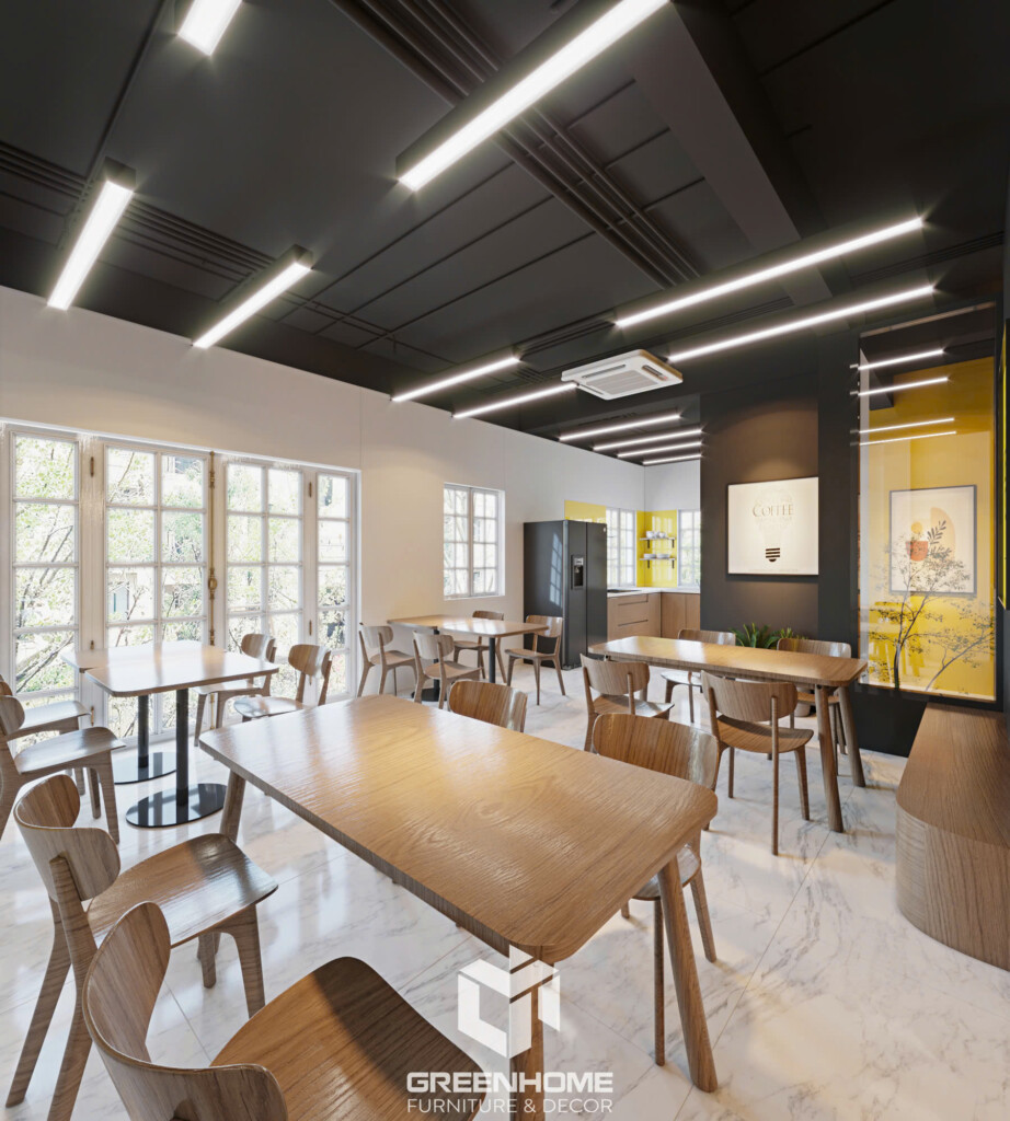 Khu cự thư giãn, ăn uống thiết kế mở với nội thất gỗ tinh tế, góc chill nhẹ nhàng với ánh sáng ấm áp, là nơi lý tưởng để nhân viên nạp lại năng lượng giữa ngày dài bận rộn. Những không gian như thế không chỉ đơn thuần là nơi nghỉ ngơi mà còn là “chất keo” gắn kết văn hóa doanh nghiệp – một trong những yếu tố quan trọng của bất kỳ dự án thiết kế nội thất văn phòng cao cấp nào.
