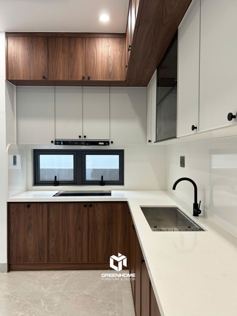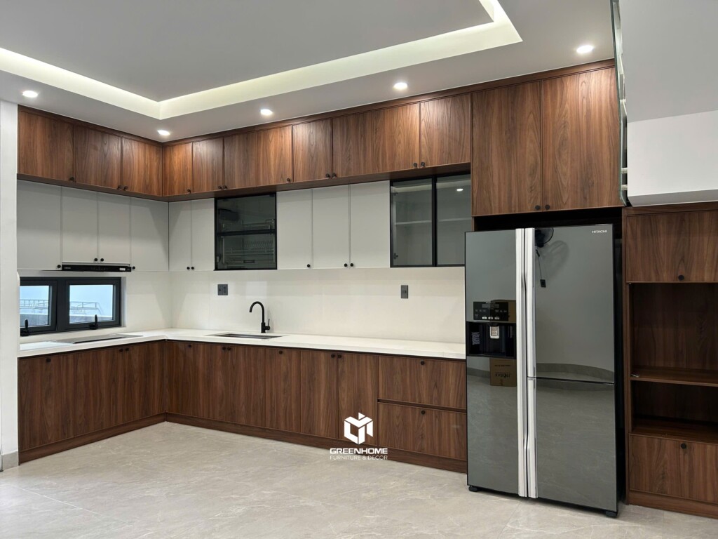 Tủ bếp chữ L kết hợp đảo tiện lợi