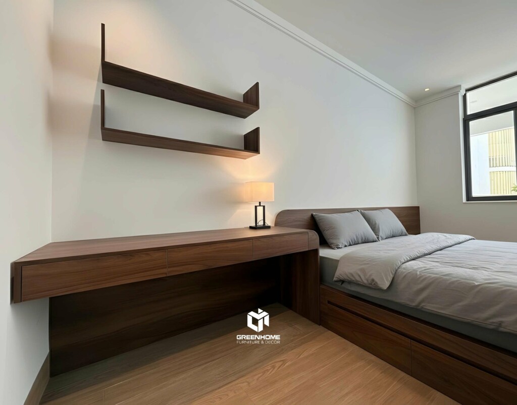 2️⃣ Phòng ngủ 1 – Tinh tế, gọn gàng và đầy công năng