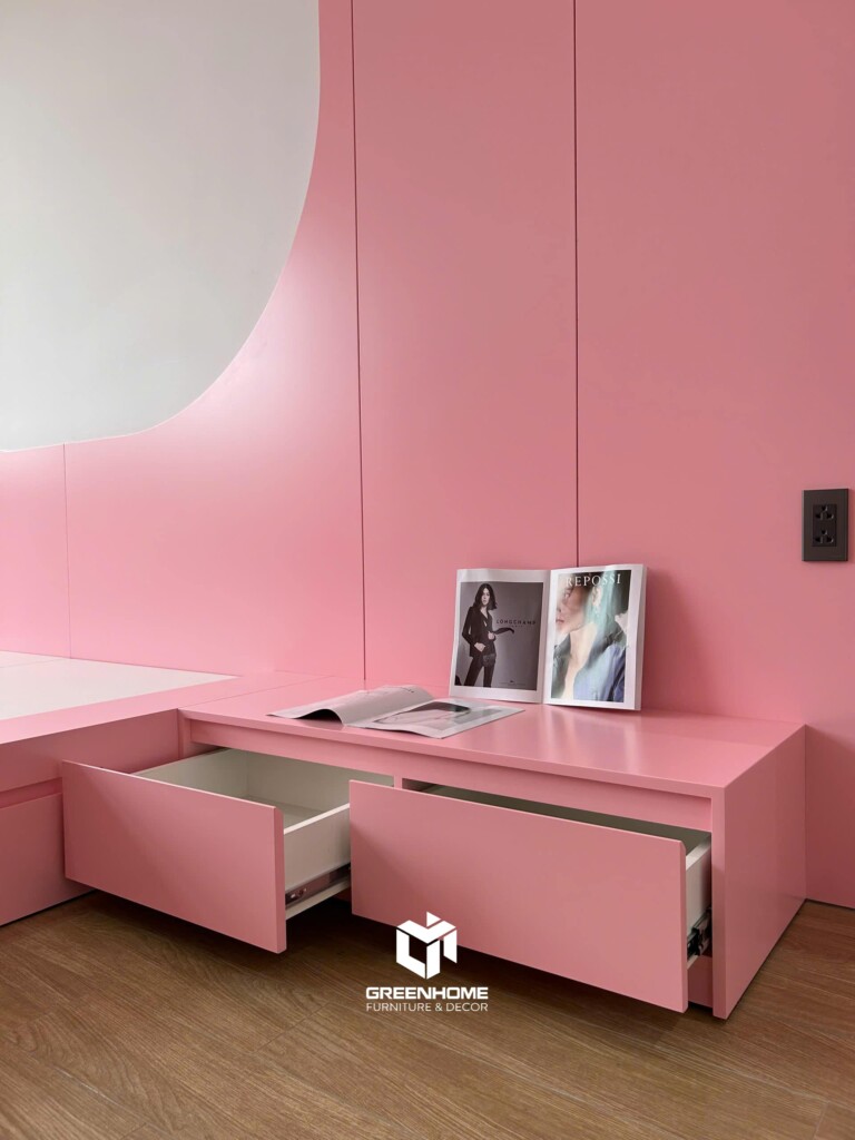 3️⃣ Phòng ngủ 2 – Sắc hồng pastel cho không gian trẻ trung
