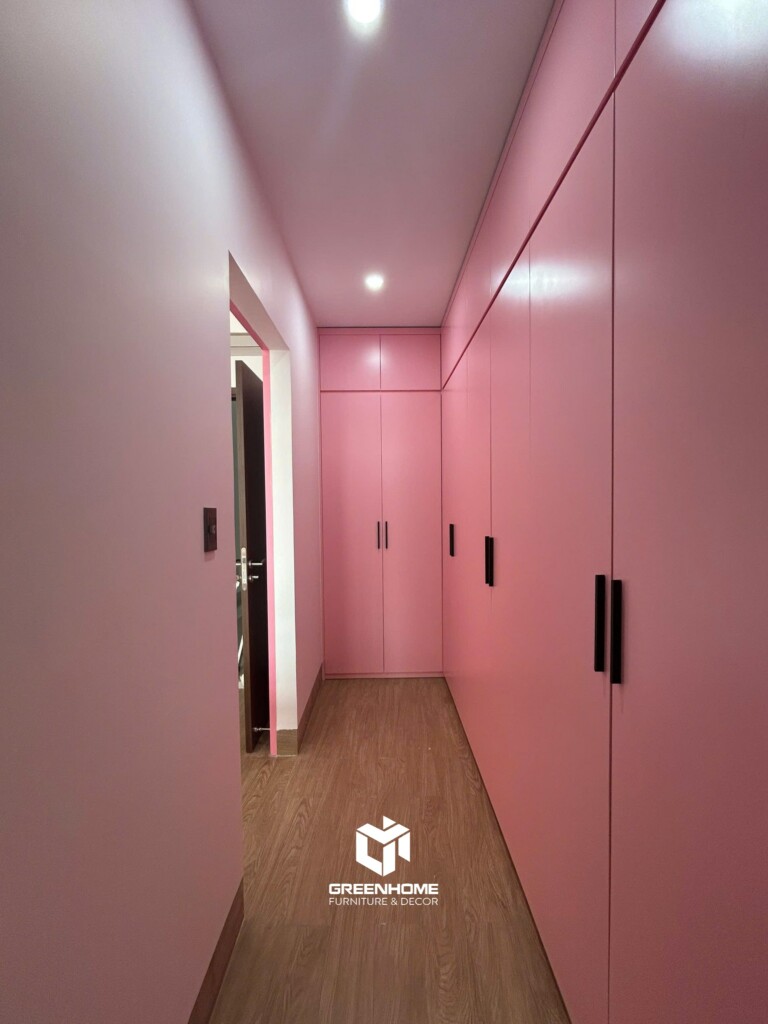 Tủ áo hồng – trắng, phụ kiện giảm chấn