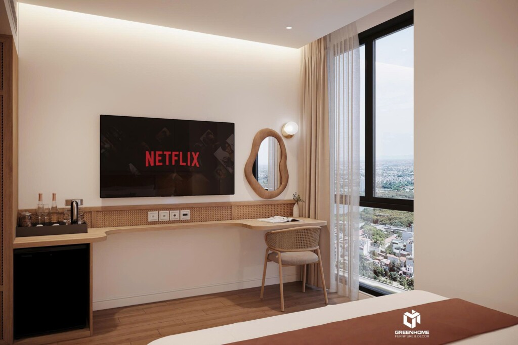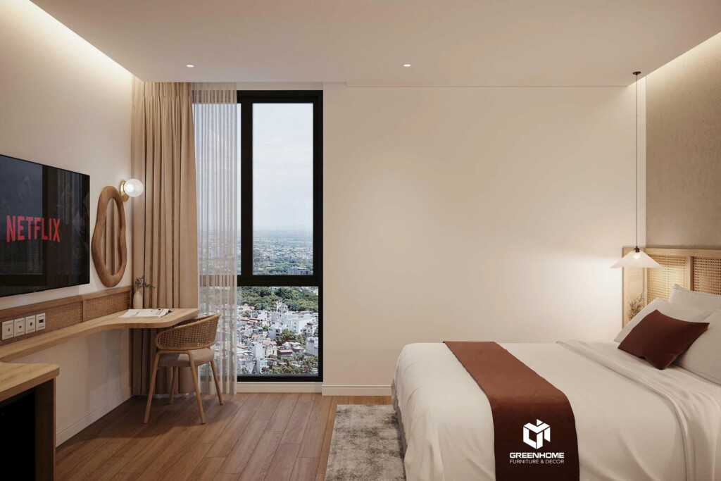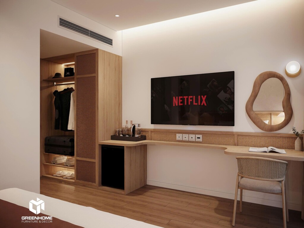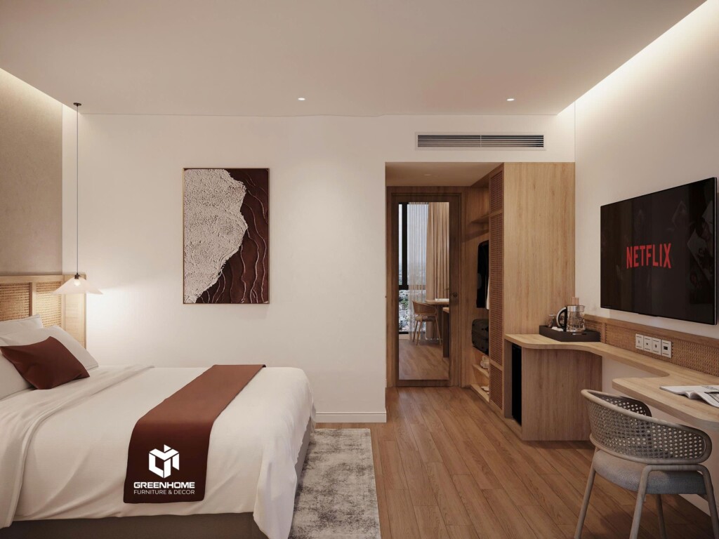 Trong bối cảnh cạnh tranh của ngành du lịch biển, thiết kế nội thất khách sạn Vũng Tàu đóng vai trò quan trọng trong việc tạo dấu ấn và nâng tầm trải nghiệm lưu trú. Mẫu thiết kế mà GreenHome giới thiệu theo phong cách Modern Cozy – hiện đại, tinh tế, phù hợp với các khách sạn và homestay tại Vũng Tàu.