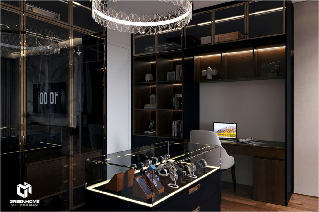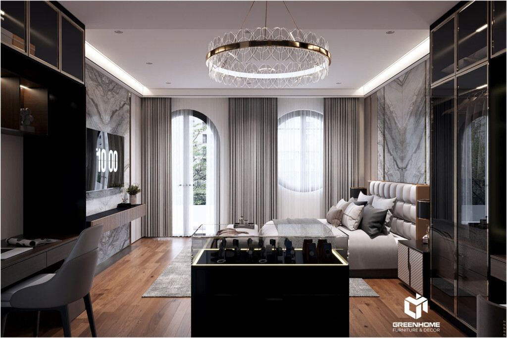 Thiết kế nội thất cao cấp phong cách Monochrome mang đến sự tinh tế và hiện đại. Tập trung vào sự tương phản giữa các tông màu đơn sắc như đen, trắng và xám. Với sự kết hợp khéo léo giữa vật liệu và ánh sáng của kts nhà GreenHome, phong cách thiết kế nội thất cao cấp này tạo ra không gian sang trọng, tối giản nhưng vẫn ấm áp và đầy sức hút, thể hiện gu thẩm mỹ tinh tế của gia chủ.